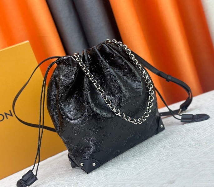 The Ultimate Chic Essential: The LV Black Lambskin Drawstring Bag