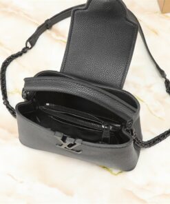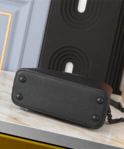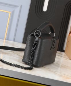 There is something undeniably powerful about a “triple black” accessory. The Louis Vuitton Capucines East-West Mini in All Black takes the iconic architectural silhouette of the Capucines and stretches it into a sleek, horizontal “East-West” frame that feels fresh, modern, and just a little bit edgy.