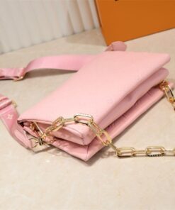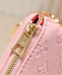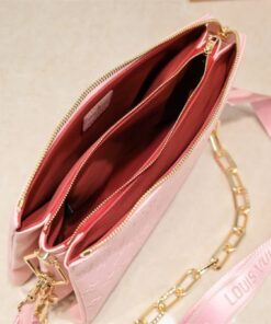 Elevate your wardrobe with the Louis Vuitton Coussin PM in Light Pink. Crafted from premium monogram-embossed lambskin (10.2 x 7.9 x 4.7 inches), this durable yet soft bag features three organized compartments and a versatile dual-strap system. Whether for airport fashion, upscale dinners, or daily commutes, its blend of edgy gold hardware and feminine aesthetics makes it the perfect high-capacity accessory for any occasion.