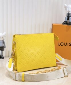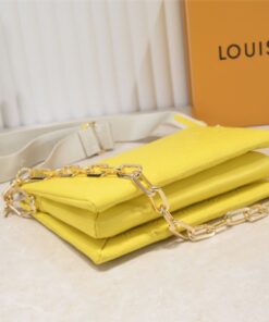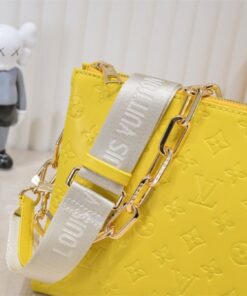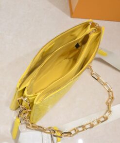 If you’re looking to inject some high-octane energy into your wardrobe, the Louis Vuitton Coussin PM in Yellow is your new best friend. This isn’t just a bag; it’s a statement of confidence. Crafted from pillowy, monogram-embossed lambskin that feels like a literal cloud, this piece balances edgy hardware with a playful, sunny disposition. Whether you’re rocking the chunky gold chain for a high-fashion edge or the sporty jacquard strap for a casual vibe, this bag refuses to be ignored.