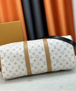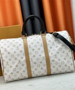 Travel in style with the Louis Vuitton Monogram Dune Keepall Bandoulière 45. This iconic 45cm cabin-size bag is crafted from durable Monogram Dune canvas and premium South Korean imported leather, blending timeless LV heritage with a modern aesthetic. Perfect for airport fashion, weekend shopping, and international travel, its spacious capacity and adjustable strap ensure long-lasting comfort and sophisticated style for any getaway.
