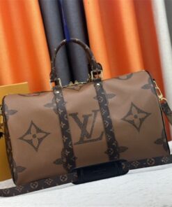 Elevate your travel game with a bold twist on a timeless classic. This Louis Vuitton Keepall, featuring the striking Monogram Giant and Monogram Reverse coated canvas, is designed for those who want to be noticed while staying effortlessly organized. The play on proportions—mixing oversized motifs with the traditional palette—creates a modern, high-fashion edge that breathes new life into the iconic silhouette.