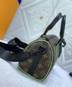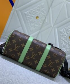 The iconic Keepall has officially shrunk down into the most “it-bag” size imaginable, and I am absolutely living for this Minty Green update. Mixing that classic Monogram Macassar coated canvas with a pop of vibrant green cowhide leather, this piece is the perfect blend of heritage vibes and modern streetwear energy. The matte black hardware gives it a sleek, edgy finish that keeps the look grounded and ultra-premium.