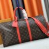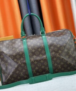 From the moment you feel the Monogram Macassar canvas, you know you’re carrying a masterpiece. The contrast between the dark, masculine canvas and the vibrant Borneo Green cowhide leather is absolutely electric—it gives the classic Keepall a fresh, modern edge that I am obsessed with.