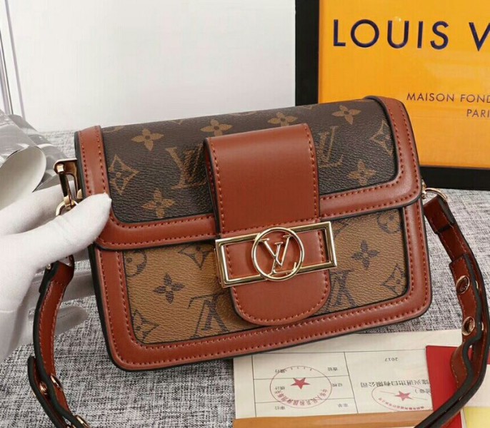 Elevate your wardrobe with the Louis Vuitton Mini Dauphine, a stunning blend of Monogram and Reverse canvas. Measuring 7.9 x 5.9 x 3.5 inches, this premium leather bag offers a spacious two-compartment interior and durable gold-tone hardware(Leather Imported from South Korea). Perfect for upscale dinners, art galleries, or travel, its adjustable strap and iconic style make it the ultimate versatile accessory for the modern fashionista.