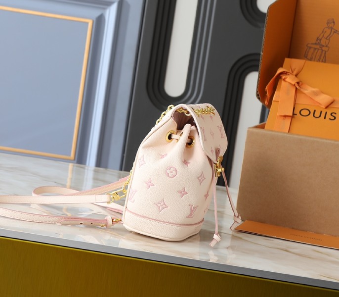Elevate your wardrobe with the Louis Vuitton Nano Noé Backpack Eden. Measuring 7.5 x 5.9 x 3.9 inches, this bicolor embossed grained cowhide bag offers surprising capacity for your phone, wallet, and keys. Perfect for brunch, art galleries, or weekend shopping, its durable, high-quality leather and versatile strap-to-chain styling make it a timeless luxury essential for any occasion.