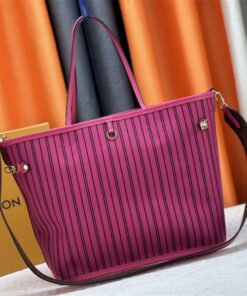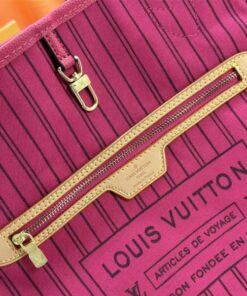 Louis Vuitton Neverfull Bandouliere Inside Out MM Tote In Monogram Canvas And Rose Pondichery Textile