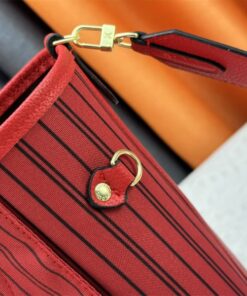The Louis Vuitton Neverfull MM Bandouliere in Monogram Canvas and Rouge Sari isn’t just a bag; it’s a lifestyle upgrade. For decades, the Neverfull has been the “holy grail” of totes, but this Bandouliere version brings a fresh, functional twist with that gorgeous removable strap. The interior pops with a vibrant Rouge Sari textile lining, making every reach for your keys feel like a little celebration of color.
