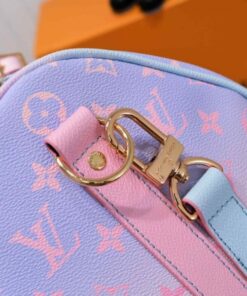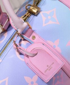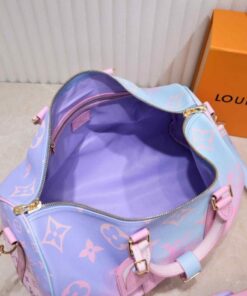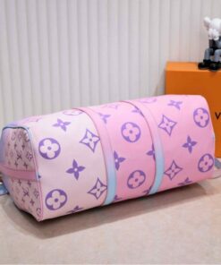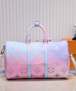 Elevate your travel game with the Louis Vuitton Spring 2022 Keepall 45 in Sunrise Pastel. This 45cm cabin-sized icon is crafted from premium monogram coated canvas and genuine South Korean imported leather for lasting durability. Perfect for airport fashion, weekend shopping, or gallery hops, its spacious interior and dreamy gradient style make it the ultimate high-capacity luxury accessory for any fashion-forward journey.