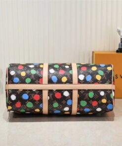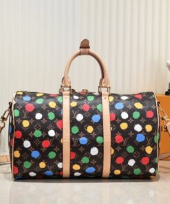 Travel in style with the Louis Vuitton x Yayoi Kusama Keepall 45. Crafted from durable Monogram canvas and genuine leather (Leather Imported from South Korea), this 17.7-inch travel bag offers a spacious capacity for airport fashion or weekend getaways. A blend of artistic flair and classic luxury, it’s the perfect high-durability choice for art lovers and frequent flyers alike.