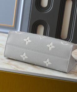 Elevate your everyday rotation with the stunning Louis Vuitton OnTheGo MM in the sophisticated Gray and White Quartz colorway. This isn’t just a tote; it’s a masterclass in blending high-fashion aesthetics with “carry-everything” practicality. Crafted from supple Monogram Empreinte leather, the embossed oversized motif adds a textural depth that feels modern yet timeless.