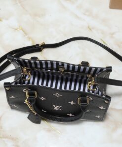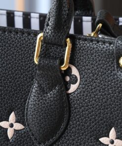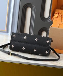 Elevate your wardrobe with the Louis Vuitton OnTheGo PM Eden in Black. Measuring 9.8 x 7.5 x 4.5 inches, this durable bag is crafted from premium South Korean imported cowhide leather. Featuring a spacious interior for your long wallet and essentials, its versatile style is perfect for everything from office commutes to upscale dinners. An iconic blend of luxury and functionality.