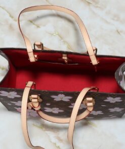 Discover the Louis Vuitton Onthego MM in Sakura Brown Monogram Canvas (35 x 27 x 14 cm). Crafted from premium South Korean imported leather and durable coated canvas, this artistic tote features a charming cherry blossom motif. Perfect for work commutes, art galleries, or airport fashion, it offers a spacious interior for a 13-inch laptop and daily essentials, combining long-lasting durability with iconic style.