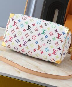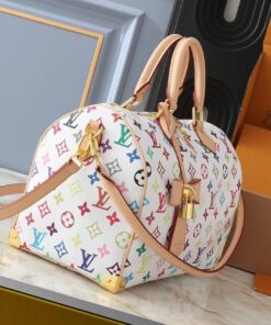 This vibrant reimagining of the classic Speedy silhouette is more than just a handbag; it’s a statement piece that brings a playful, artistic energy to any wardrobe.